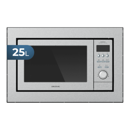 GrandHeat 2500 Built-In SteelBlack. Microondas encastrable Digital de 900W, Integrable, 25 litros, Grill, Quick start, 8 funciones preconfiguradas, Temporizador