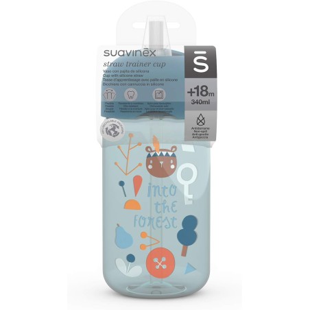 SUAVINEX, Vaso Entrenamiento, Vaso Aprendizaje Bebé Con Pajita Flexible, Con Sistema Antiderrame, Para Bebés +18 Meses, Apto Para Lavavajillas, 340 ml, Color Azul