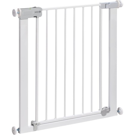 Safety 1st Auto Close, Barrera Seguridad Niños Escalera a Presión, 73–80cm (máx. 136cm), Valla Seguridad Infantil Automática, Apertura Una Mano, Sin Tornillos (Sin Taladros), Doble Bloqueo, Blanca