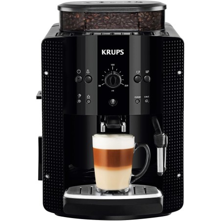 Krups Roma, Cafetera superautomática, Depósito de agua 1,7 L, 3 niveles de temperatura, 3 niveles de intensidad, 15 bares, Molinillo cónico de metal, Panel de control fácil, Negra, EA810870