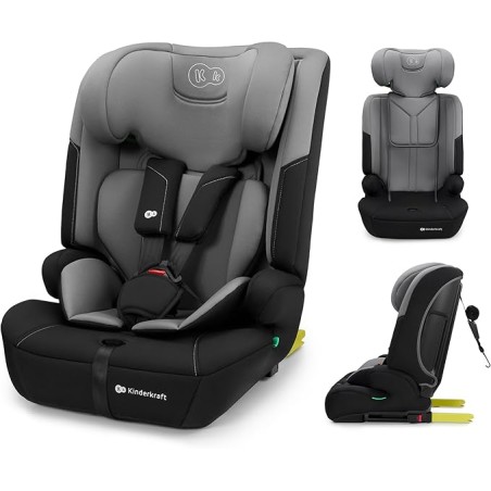 Kinderkraft SAFETY FIX 3 PRO, Silla de Coche i-Size 76–150 cm, ISOFIX, Top Tether, Protección Lateral H-GUARD, Arnés 5 Puntos, Funda Lavable, Fácil Instalación, Gris